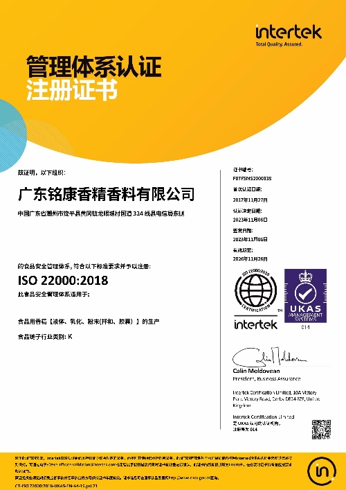 多年來,銘康本著“科學(xué)發(fā)展、追求卓越”的企業(yè)宗旨,秉承“攜手共進(jìn)、誠信共贏”的經(jīng)營理念,歷經(jīng)二十余載的不懈努力,已發(fā)展成為在中國香料香精行業(yè)知名度高、創(chuàng)新能力強、影響力大的品牌企業(yè),歷任“中國香精香料化妝品工業(yè)協(xié)會副理事長單位”、“香精專業(yè)委員會副主任委員單位”、“香料香精法規(guī)事務(wù)工作委員會副主任單位”、“科技工作委員會副主任委員單位”,是國家標(biāo)準(zhǔn)《日用香精GB/T22731-2017》主要起草單位,連續(xù)多年被評為中國香精香料行業(yè)十強企業(yè)。